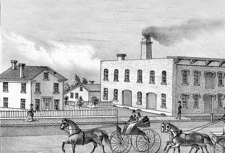 Originally built in 1853, the building was used as a planing mill until it burned down in 1869. It was rebuilt by John G. Miller later that same year. The new building was a steam-powered planing mill specializing in windows, doors, shutters and gingerbread trim until 1910.